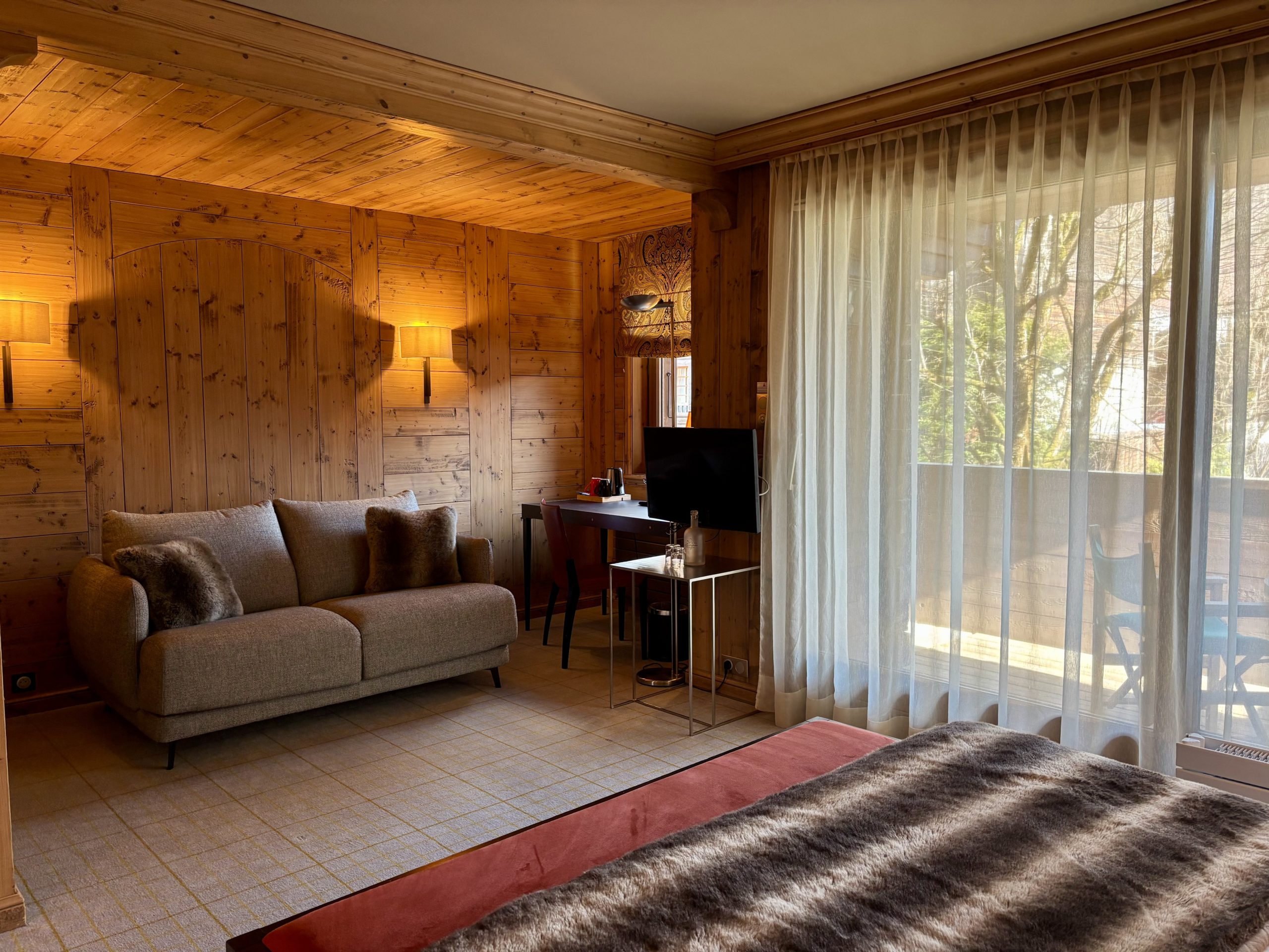 A very beautiful, cosy room with a living room area or office desk where the warm tones of a wooden decor mingle with contemporary furnishings. Those rooms benefit from the best location in the hotel, blacony with a south orientation...